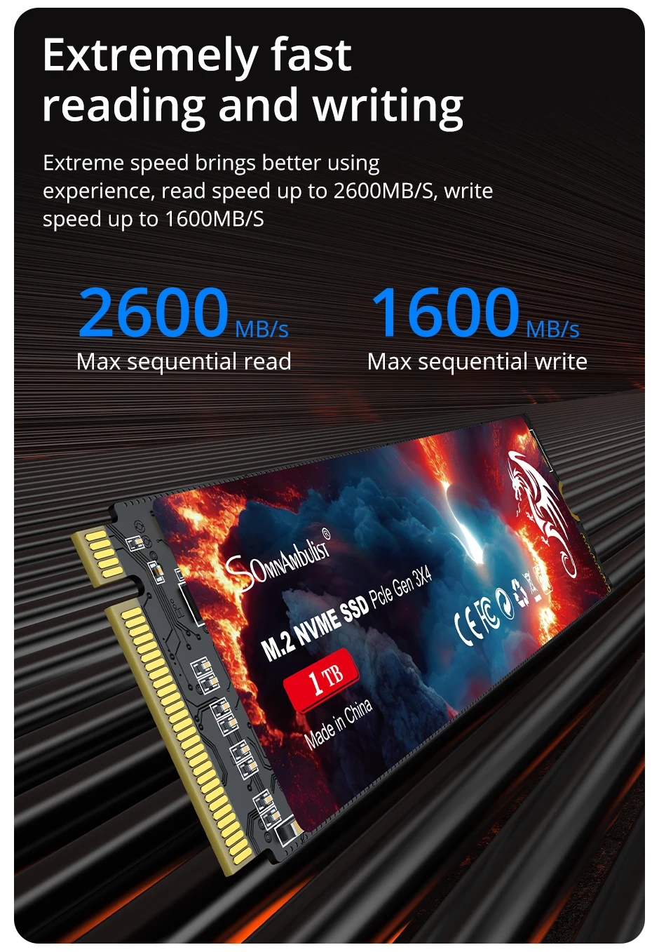 Velocidade: Leia 2600 MB/s, escreva 1600 MB/s